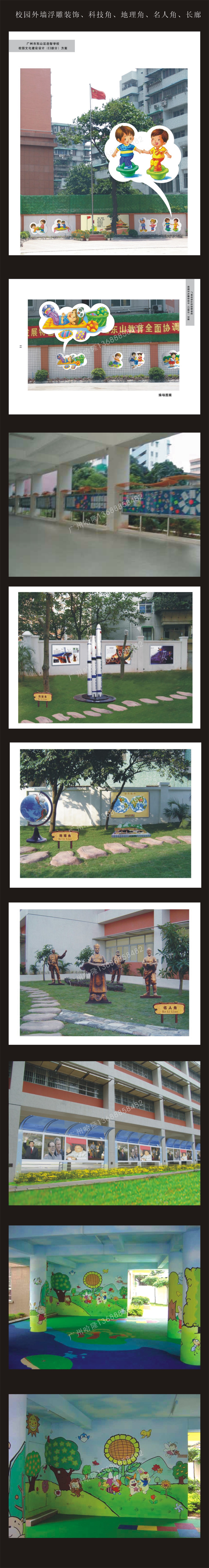 校园外墙浮雕装饰、科技角、地理角、名人角、长廊